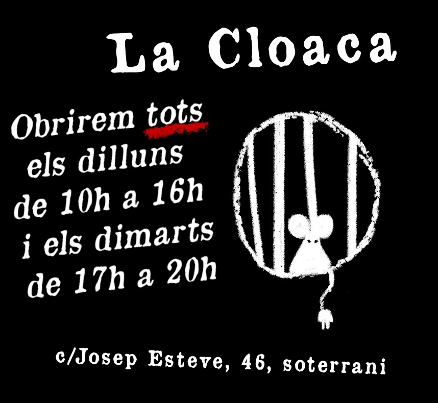 El Taller de Reparació Comunitari LA CLOACA és un espai per a compartir ferramentes i coneixements de manera col·lectiva. S’adquireixen mitjans de manera conjunta i es fiquen a disposició de tota la gent que vulga usar-les, ja que moltes vegades no ens podem permetre de manera individual l’instrumental i els materials, i en altres casos els usaríem molt poc.