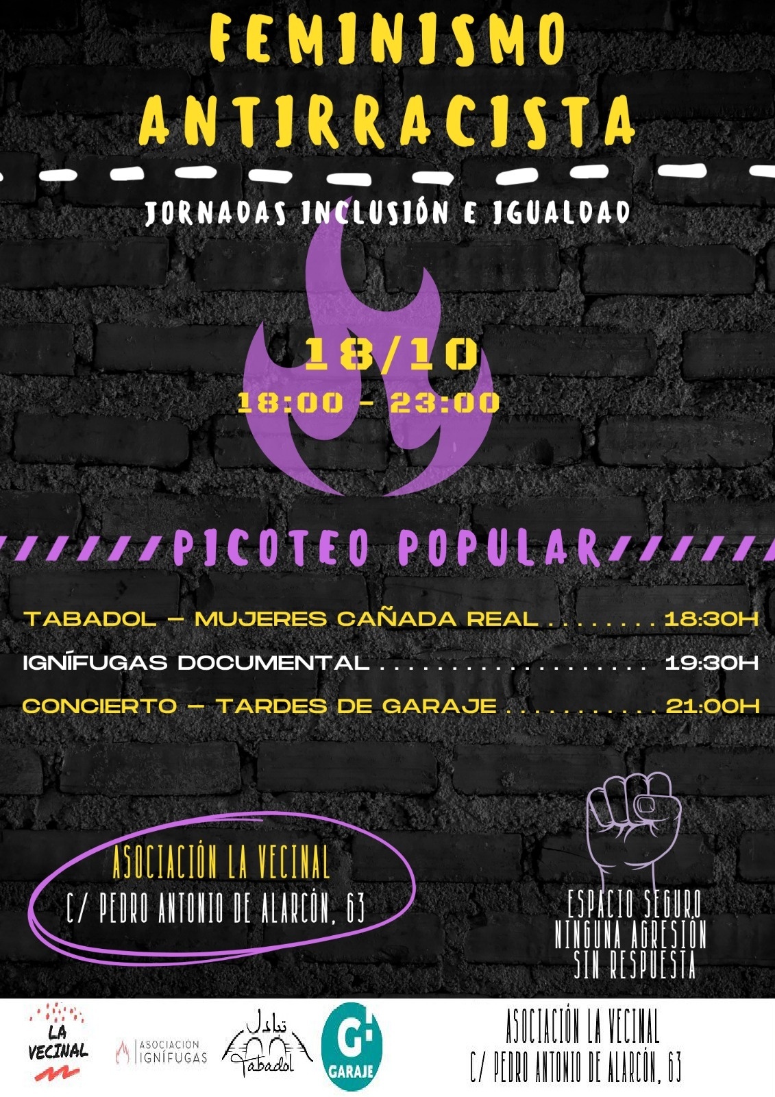 🫵Ven a disfrutar la tarde con nosotras y con los colectivos Tabadol, mujeres de la Cañada Real; Ignífugas, proyecto audiovisual sobre las múltiples opresiones que combaten las mujeres; y El Garaje, inclusión a través de la música urbana.