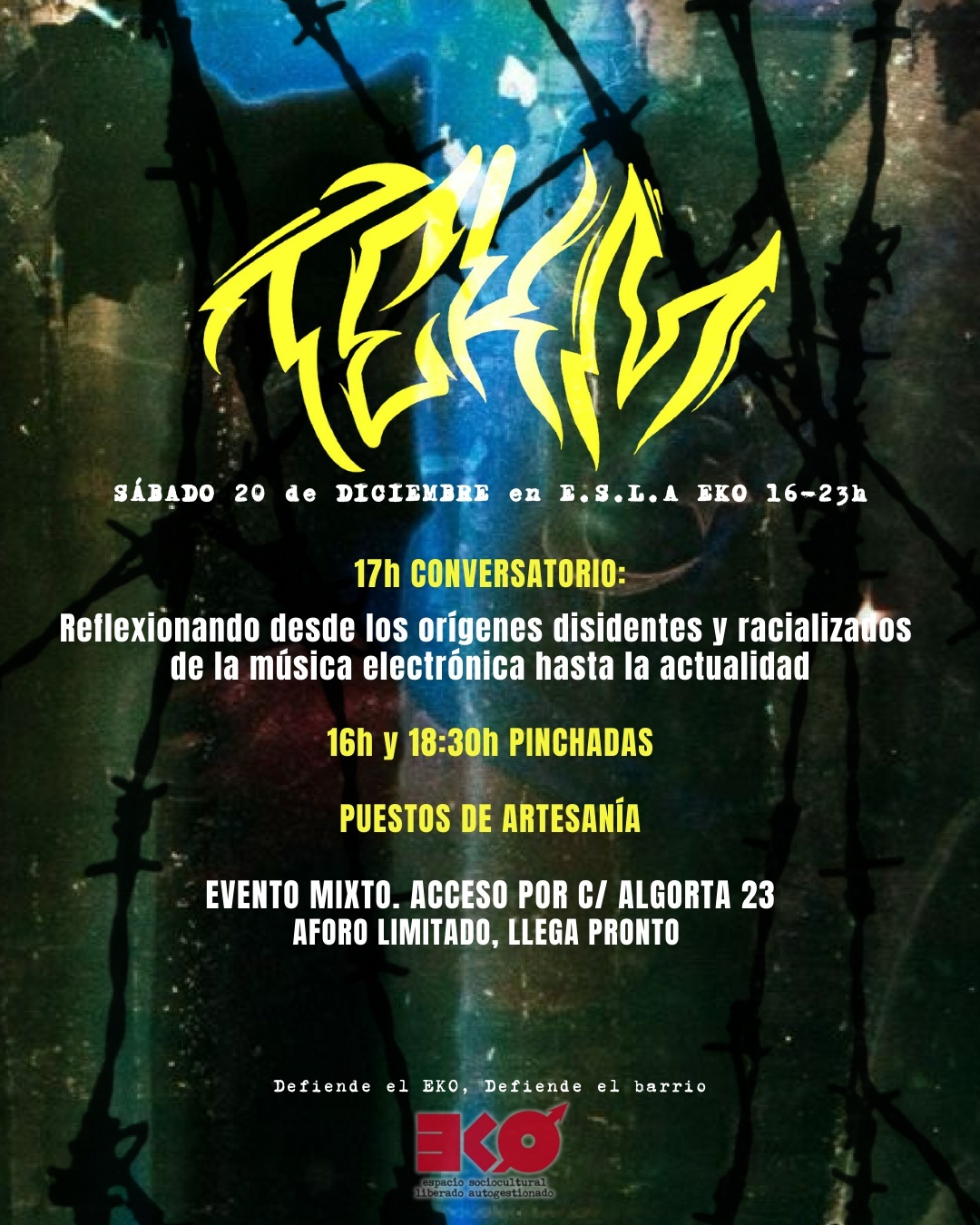 Somos TeKM, un colectivo de música electrónica autogestionado por disidentes de sexo/género y mujeres. Éste 20 de diciembre os traemos un evento cargadito de histora..